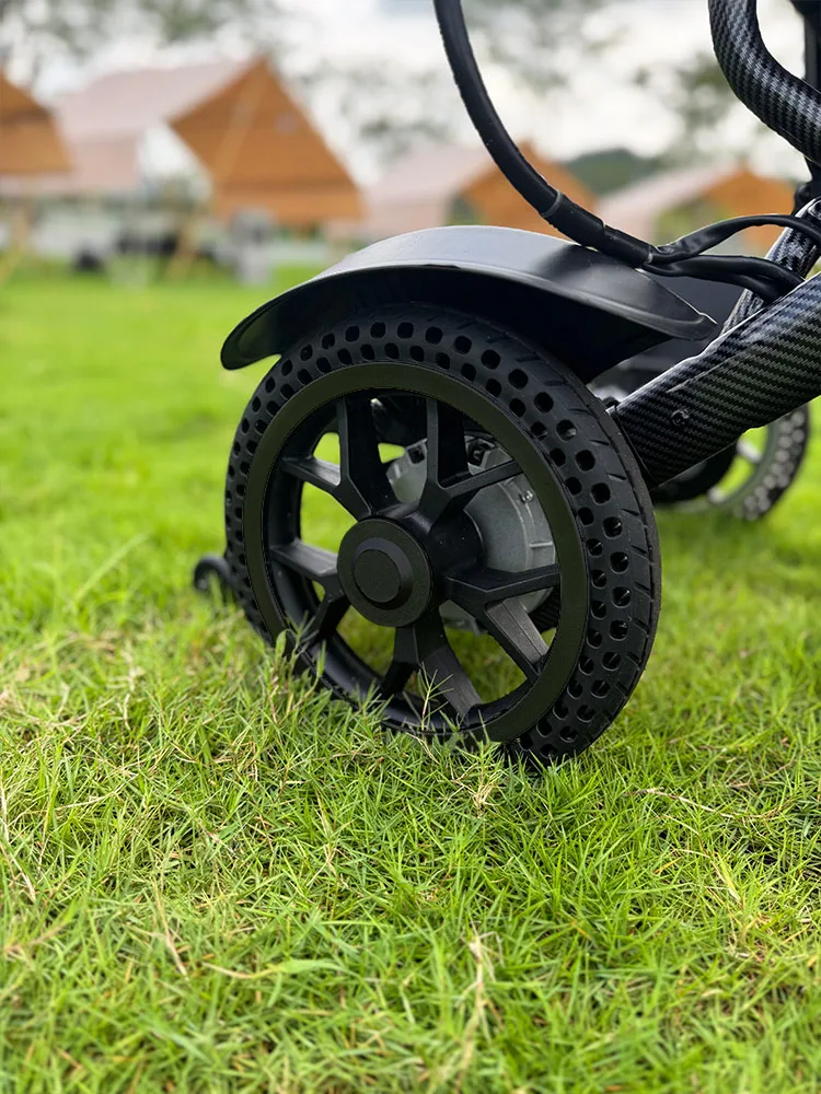 Our electric wheelchairs have honeycomb tires on both the front and rear wheels, making them suitable for both indoor and outdoor use.