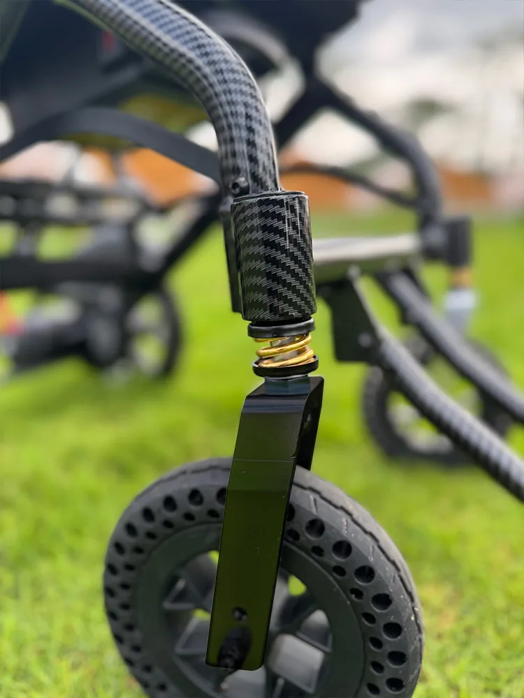 - Comfort-First Design: The shock-absorbing suspension system in both the seat and front wheels ensure superior comfort and support, even on bumpy surfaces.